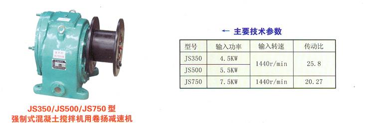 产品名称:DYJS350,JS500,JS750型强制式混凝土搅拌机用卷扬减速机